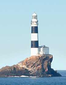 灯台の高さでは、この水ノ子島灯台は全国3位です。離島にある灯台では全国1位です。水ノ子島灯台は白地に黒の横帯2本、