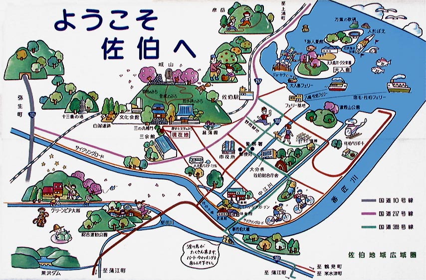・佐賀関 ・早吸日女神社 ・道の駅「佐賀関」 ・臼杵石仏 ★臼杵石仏火まつり ・臼杵市街地 ・六ヶ迫温泉 ・四浦半島やすらぎの道 ・津久見 ・暁嵐の滝 ・道の駅「やよい」 番匠川河川敷公園 ・風連鍾乳洞 ・佐伯 ・鶴御崎 ・水ノ子島灯台 ・蒲江 ・道の駅かまえ カマエカズラ ・豊後竹田 ・緒方町 ・朝地町 ・稲積鍾乳洞 ・道の駅「宇目」 ・木浦鉱山 ★木浦すみつけ祭り ・藤河内渓谷 ・道の駅「北浦」 ・須美江家族旅行村 ・祖母山 ・傾山