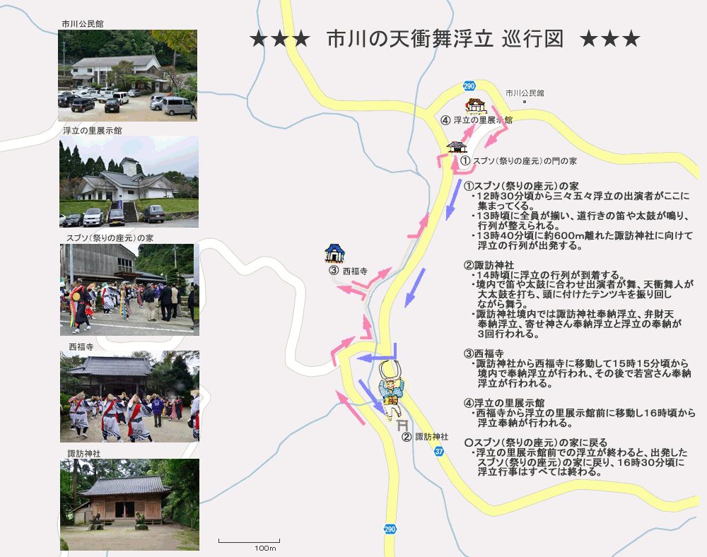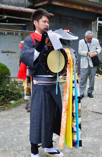 ![]() ◆ 市川の天衝舞(てんつくみゃあ)浮立は月と太陽と雲龍を描いたテンツキと呼ばれる大きな前立を顔につけて踊る ![]() ◆ 浮立は、五穀豊穣を神に感謝し、収穫を祝い、天下泰平を祈願する神前奉納の神事 ![]() ◆ 幕入り(まくり)では頭に付けたテンツキの先端が地にすれすれになるまで振り回しながら舞う(ここが一番の見所) ![]() ◆ 諏訪神社から西福寺に移動して15時15分頃から境内で奉納浮立が行われる(寺の境内で浮立が行われるのも珍しい) ![]() ◆ 西福寺でも諏訪神社とほぼ同じで棒つかい(棒ツキャー)、奴おどり、天衝舞(てんつくみゃあ)が行われる ![]() ◆ 西福寺から浮立の里展示館前に移動し16時頃から浮立奉納が行われる ![]()