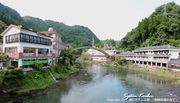 そこでどこか良い温泉はないかとぶらついていたら妙見大橋を渡った所に[日本秘湯を守る会 おりはし旅館]と言うのがありました。この旅館の創業は明治12年と妙見温泉で最も古い旅館らしい。そこで,ここの露天風呂に入ってみました。湯は若干濁っており,風呂の周辺の色で鉄分が多い温泉と分かります。泉温は少し熱めでしたが体に温泉成分が浸み込む感じでとても良い温泉でした。