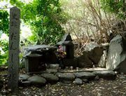 サンセットウェイ(生月農免農道)から脇道に約300m入ると行き止まりになっています。そこに車を置いて急な坂道を約10分下ると海岸に到着します。そこに生月島の隠れキリシタンの聖地となっている[だんじく様]があります。