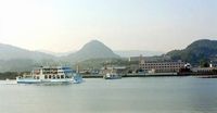 島原半島の最南端,有明海の入口に位置し,早崎半島に囲まれた天然の良港である。16世紀に領主有馬義貞は口之津を開港し南蛮貿易の拠点とした。1567年に最初の南蛮船が来航した。このときの来航地が[南蛮船来航の地]として現在の海岸線より約300m程度山手にあり,まわりは公園として整備中であった(1999/7/20)。以後1590年に日本で最初の活版印刷機が入ってきたりと口之津は国際色あふれる港町として大いに栄えた。