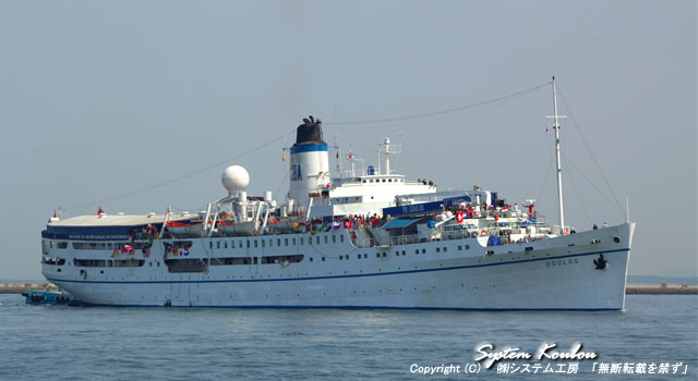 約50万冊の書籍を積み販売する「洋上書店」として知られています。2007/5/12〜20日期間博多港で船内が一般公開され船内ツアーや英会話教室、