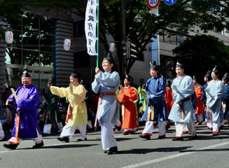◆ 【13:20頃】 博多小学校女子による博多松囃子(まつばやし) 稚児舞(ちごまい)の披露 ![]()
