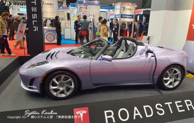 ◆ テスラ(TESLA)のブース ![]() ◆ EVの純スポーツカー テスラ・ロードスター(Tesla Roadster)※ 0-97kmhを3.7秒。一度の充電で394kmの航続距離 ![]()