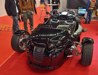 ◆ カンパーニャモータース カナダ製スリーホイーラー T-REX (カワサキのモンスターバイク・ZZR1400のエンジンを搭載) ![]() ◆ 後ろはバイク、前は車の三輪自動車 車両本体価格は650万円かららしい ![]()