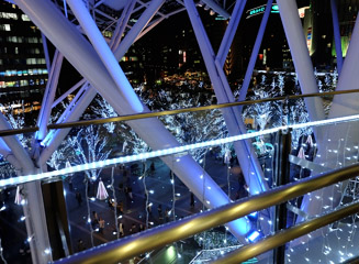 ◆ JR博多シティ2Fペデストリアンデッキ ![]() ◆ 光の樹海 ![]() ◆ タクシーの駐車場と大博通り ![]() ◆ イルミネーションでとても華やかになったJR博多駅 ![]()
