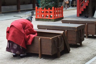 ◆奉納した野菜などを長持ちに納めて例祭は終了11:00頃