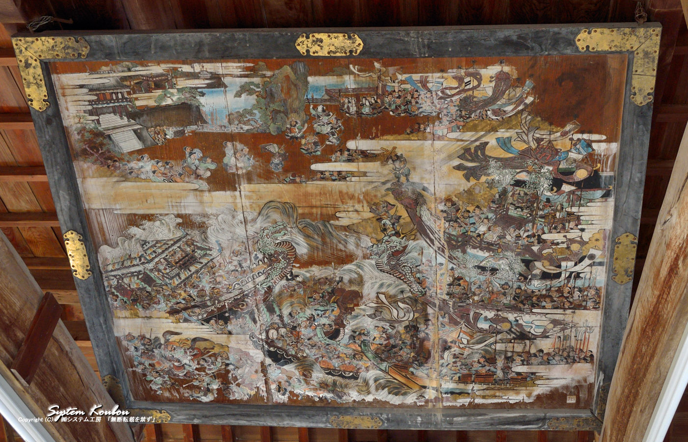 ◆ 福岡県指定文化財の「福間浦鰯(いわし)網漁絵馬」 ※ 安政4年(1857) に奉納されたもの ![]() ◆ 「福間浦鰯(いわし)網漁絵馬」は当時の漁法や風俗がよく伝わってくる作品 ![]() ◆ 魚を奪って逃げる人や、それを追いかける人など、じつにリアルに描かれている ![]() ◆ 正月3日に開催される 「福間浦の玉せり」 も諏訪神社に参拝する。 左端は諏訪神社の宮司さん ![]() ◆ 毎年9月26日、27日に開催される 「諏訪神社の秋祭り(放生会)」 ![]()