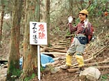 大金峰登山口は近くの国道沿いに大きなカンバンがある。九州自然歩道になっているが自然林はあまり無い。
